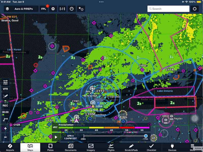 The mobile webApp can also show airspace restrictions as a result of terminal control areas, control zones or non-TFR restricted airspace. Obstacles are clearly presented when operating at an altitude difference of 200ft or less.